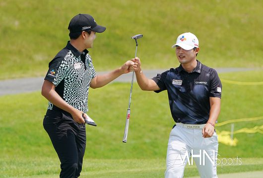 9일 경남 양산시 에이원CC 남, 서 코스(파71. 7,138야드)에서 2023시즌 KPGA 코리안투어 '제66회 KPGA 선수권대회 with A-ONE CC(총상금 15억 원, 우승상금 3억 원)' 2라운드 경기가 열렸다. 이날 선수들이 3번 홀에 있다. <저작권자 Copyright ⓒ MHN스포츠 / MHN엔터테인먼트 무단전재 및 재배포 금지>