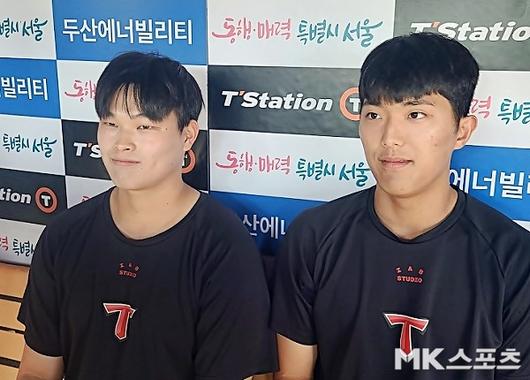 아시안게임 대표팀 최종 엔트리 발표 뒤 취재진과 만난 이의리와 최지민은 태극마크에 대한 기대감을 내비쳤다.