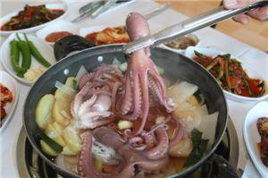 박속세발낙지탕에 칼국수 사리를 넣은 계절의 별미 밀국. |