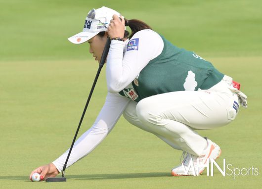 10일 강원도 양양에군 설해원 더 레전드 코스(파72, 예선 6,678야드/본선 6,495야드)에서 KLPGA 퀸즈 마스터즈(총상금 12억 원, 우승상금 2억 천 6백만 원) 2라운드가 열렸다. 지한솔이 3번 홀 퍼팅샷을 위해 그린을 살피고 있다. <저작권자 Copyright ⓒ MHN스포츠 / MHN엔터테인먼트 무단전재 및 재배포 금지>