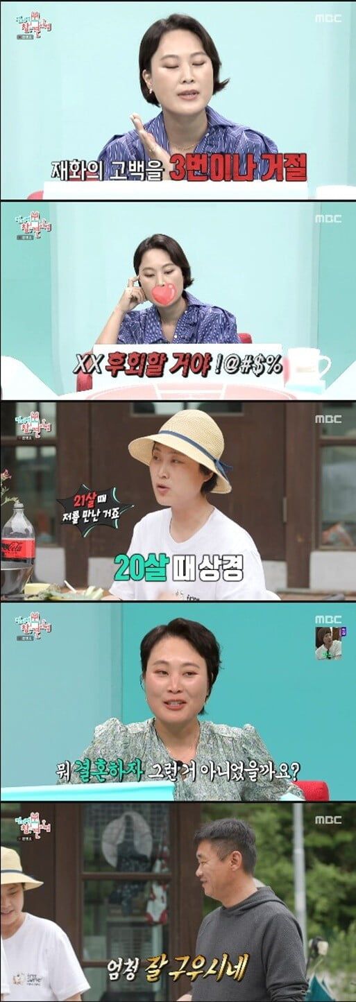 한편 김재화에게 남편을 어떻게 만났냐는 질문에 김재화는 "제가 21살 때 오빠를 만났다"라며 "세 번 고백을 했는데 미안하다고 말했고 차였다"라고 밝히며 "속으로 '안 사귀면 후회하게 해줄 거야'라고 다짐했음을 밝혀 웃음을 안겼다.