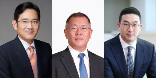 (왼쪽부터)이재용 삼성전자 회장, 정의선 현대차그룹 회장, 구광모 LG 그룹 회장. (사진=각 사) |