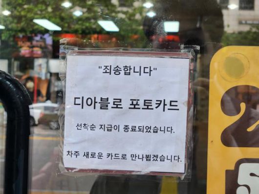 "죄송합니다. 디아블로 포토카드 선착순 지급이 종료되었습니다." 서울 시내 곳곳의 버거킹 매장에 붙은 안내문구에 게이머들이 탄식하며 돌아서고 있다. 온라인 커뮤니티에도 버거킹 포토카드를 구한다는 글이 곳곳에 올라왔다.