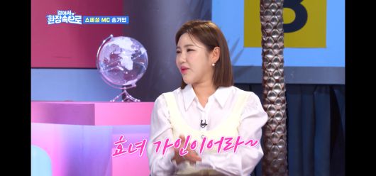 “효녀 가인이어라”고 소개한 송가인은 지난달 8일 어버이날을 맞아 ‘효도 플렉스’를 했던 일화를 전했다. 이어 방송 중 박나래가 “가인 씨도 애교가 있는 편이냐”라고 묻자 송가인은 “난 지금도 아빠 무릎에 앉고 아빠랑 뽀뽀하고 그런다. 엄청 애교 부리는 딸이다”라고 대답했다.