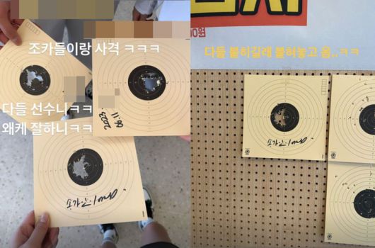 송가인은 해당 표적지를 사격장 벽에 붙여놓고 왔음을 밝혔다.