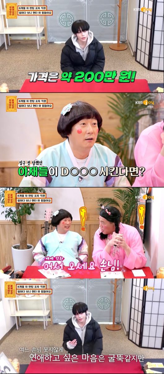 12일 방송된 KBS JOY 예능 프로그램 '무엇이든 물어보살'에서는 헌팅포차에서 근무 중인 23세 의뢰인이 보살들(이수근·서장훈)을 찾아왔다.