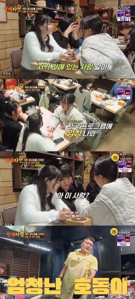 강호동은 라면이 다 됐다고 알렸고 소녀 중 한 명이 "저기 안에 있는 사람 안다. 한국 프로그램에 엄청 나온다"며 자신의 휴대폰을 검색해서 친구들에게 보여줬고 친구들은 "대박"이라며 신기해했다.