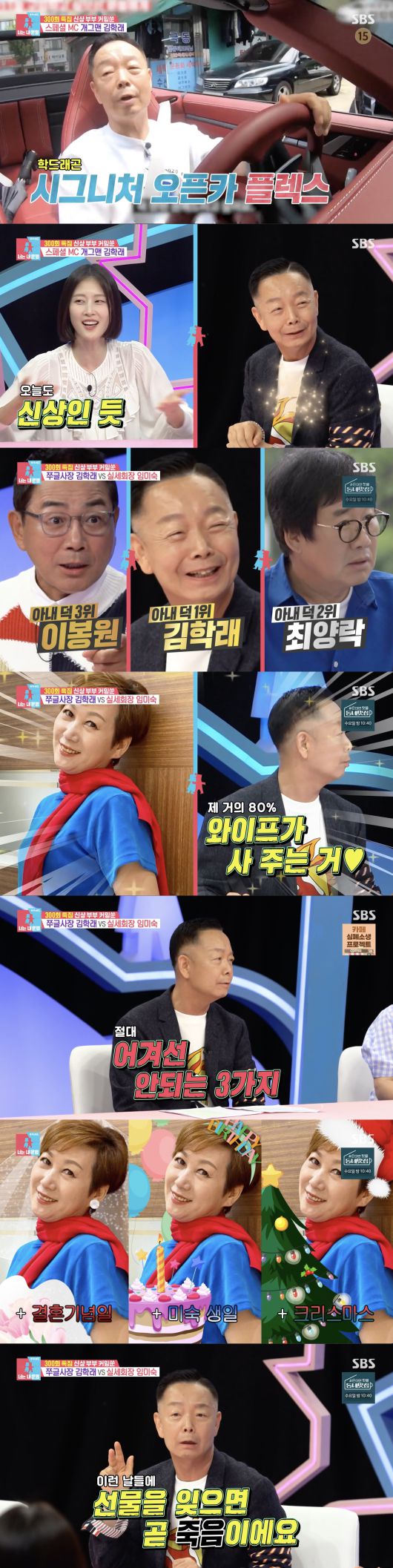 또한 MC들은 아내 덕을 많이 본 개그맨 3위에 이봉원, 2위에 최양락, 1위가 김학래라며 축하 인사를 건넸다.