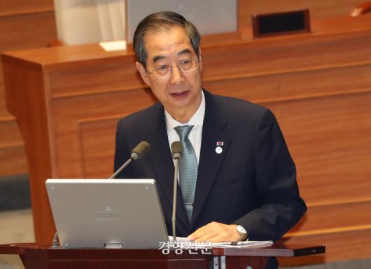 한덕수 국무총리가 13일 국회 본회의 경제 분야 대정부질문에서 답변하고 있다. 박민규 선임기자 |