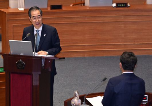 한덕수 국무총리가 13일 서울 여의도 국회 본회의장에서 열린 경제 분야 대정부질문에서 윤상현 국민의힘 의원 질문에 답하고 있다. 2023.6.13 안주영 전문기자 |