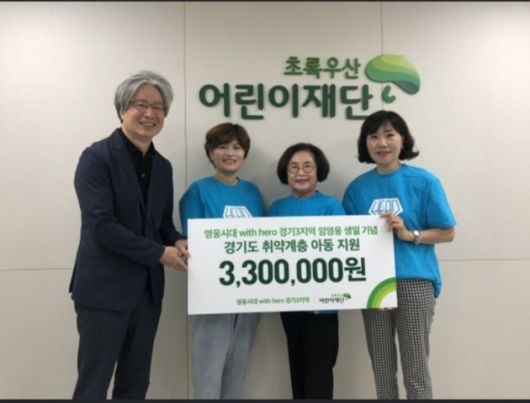 이충로 초록우산 어린이재단 경기지역본부장은 “미래 세대 아동들이 건강하게 성장할 수 있도록 많은 관심과 응원을 보내주셔서 감사드린다”며 “이번에 영웅시대 경기3지역 회원들이 모아준 마음을 도움이 절실한 아이들에게 잘 전달하겠다”고 밝혔다.