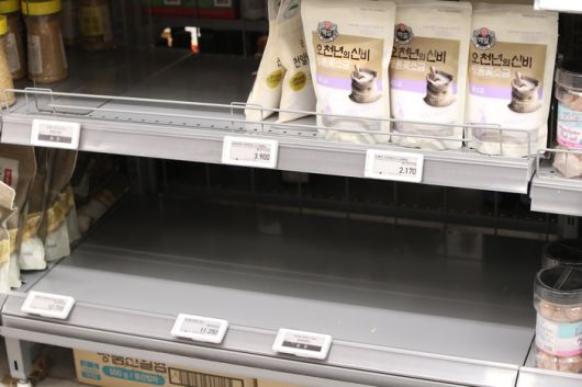 후쿠시마 원전 오염수 방류 전에 소금을 구입해두려는 소비자들이 늘면서 대형마트에 소금이 품절 사태를 보이고 있다. 사진|연합뉴스 |