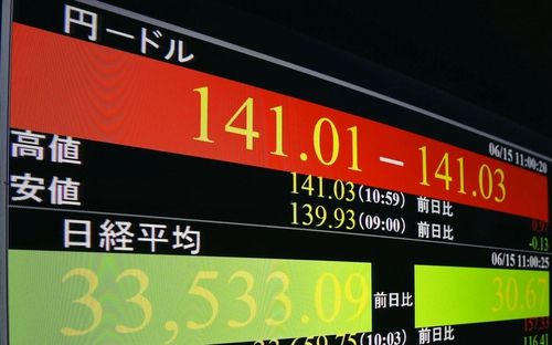 15일 오후 3시 현재 도쿄 외환시장에서 엔·달러 환율은 전거래일 대비 1.37% 오른 달러당 141.27엔을 기록하고 있다. 작년 11월 21일 이후 가장 높으며, 올해 들어서만 달러 대비 엔화 가치는 7% 이상 떨어진 상태다. 유로화 대비 엔화 환율 역시 이날 장중 1유로당 152엔 선을 넘어서며 2008년 9월 이후 가장 높은 수준을 찍었다.