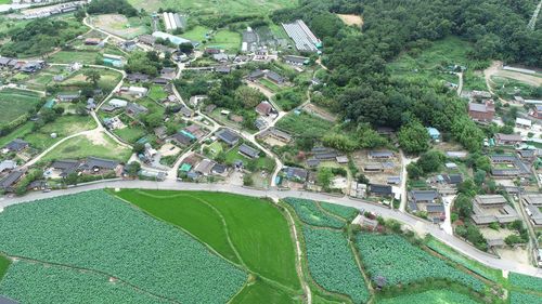마을 배치는 주산이 되는 뒷산의 낮은 산자락을 따라 좌우로 낮고 길게 펼쳐진 형식의 독특한 구성을 보인다.