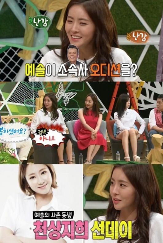 이에 진예솔은 "천상지희 선데이가 사촌 동생이다. 가족들이 선데이 칭찬만 하길래 칭찬받고 싶어서 오디션 봤다. 하지만 결과는 다 떨어졌다"고 오디션을 본 이유를 밝혀 눈길을 끌었다.