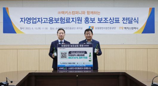16일 소진공에 따르면 전날 대전 공단 본부에서 맥키스컴퍼니와 '자영업자 고용보험료 지원사업'홍보 문구를 담은 '이제우린' 보조상표 후원식을 개최했다.