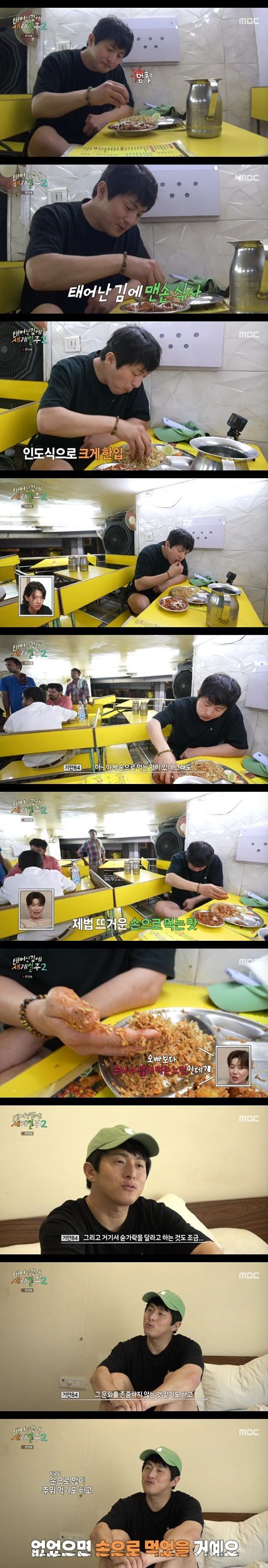 기안84는 손을 씻고 현지인들처럼 감자 브로콜리 커리와 볶음밥을 손으로 집어들었다. 처음에는 멈칫했지만 "괜히 수저를 안 쓰는 게 아니다. 이게 손으로 먹는 맛이 있다"라고 했다.