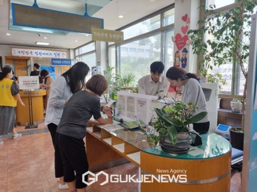 동작구청 민원여권과에서 아르바이트 대학생이 민원서류 작성을 돕고 있다. [사진제공=동작구청] |