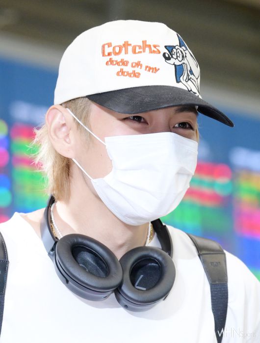 이날 방탄소년단(BTS) 뷔가 공항을 빠져나가고 있다.