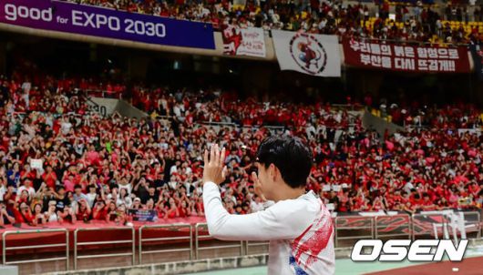 [OSEN=부산, 이석우 기자] 16일 부산 아시아드주경기장에서 하나은행 초청 축구 국가대표 친선경기 페루전이 열렸다. 대한민국 손흥민이 부산 팬들에게 인사를 하고 있다. 2023.06.16 / foto0307@osen.co.kr