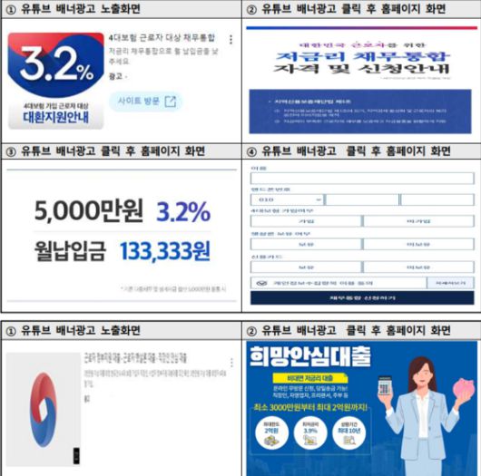 유튜브, 앱 등을 통해 정부나 공공기관을 사칭한 불법 대출 광고가 증가하며 피해가 잇따르자 금융당국이 점검에 나섰습니다.