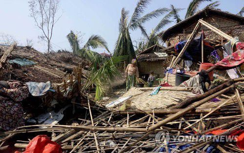 사이클론 모카로 큰 피해를 당한 미얀마 라카인주 로힝야족 실향민 거주촌 |