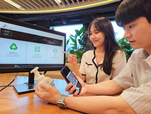QR코드를 읽어 들여 확인할 수 있는 이력정보는 대체 불가능 토큰(NFT)으로 증명돼 진위 여부를 확인하고, 이를 소재 구매자 등 이해관계자들과 이메일로 공유할 수 있다. 폐플라스틱 재활용 소재로 제품을 만들고, 이를 고객에게 객관적으로 증명하는 길이 열린 것이다.