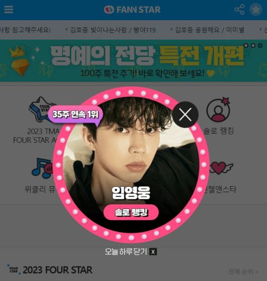 [더팩트 | 이나래 기자] 가수 임영웅이 주간 아이돌 랭킹사이트 '팬앤스타' 솔로 랭킹에서 35주 연속 1위를 차지했다.