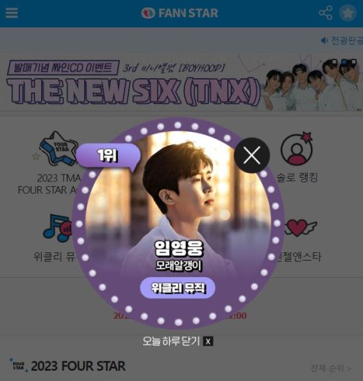 '팬앤스타' 6월 셋째 주 위클리 뮤직 투표에서 534만 6068표 득표