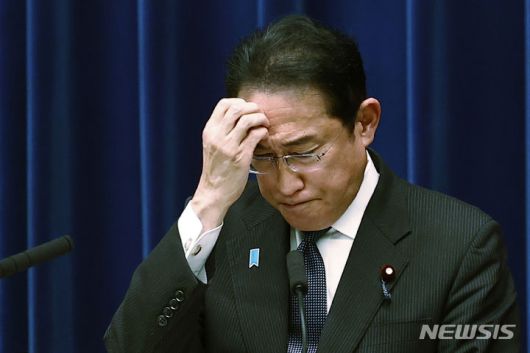 [도쿄=AP/뉴시스] 기시다 후미오 일본 총리가 후쿠시마 제1원전 오염 처리수 방류를 두고 관계 부처에 자국 어민 등 이해당사자의 이해를 구하라고 지시했다. 사진은 기시다 총리가 지난 13일 기자회견에 서 곤혹스러워 하는 모습. 2023.06.14. |