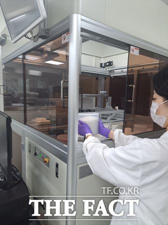 경기도 보건환경연구원 관계자가 천일염 방사능 여부를 검사하고 있다./경기도보건환경연구원 |