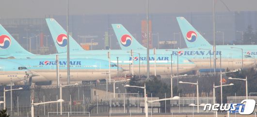 인천국제공항 계류장의 대한항공 여객기들. 2023.3.10/뉴스1 ⓒ News1 권현진 기자 |