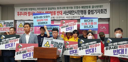 서산태안 시민행동은 이날 서산시청 브리핑룸에서 발족 기자회견을 하고 "바다는 쓰레기통이 아니다"라며 "정부는 후쿠시마 방사능 오염수 해양 방류에 대한 명확한 입장을 밝히고 적극 대응하라"고 촉구했다.