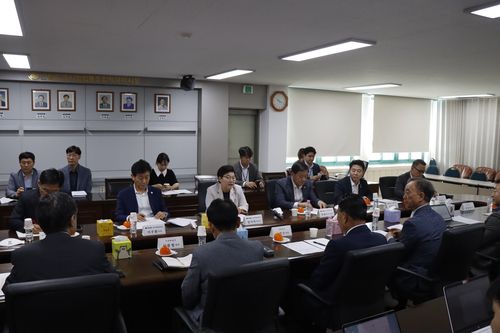 (서울=연합뉴스) 김철선 기자 = 국민의힘 노동개혁특별위원회(특위)는 22일 경기 안산시 반월도금일반산업단지에서 중소기업 현장간담회를 열고, 내년부터 중소기업에도 확대 적용되는 중대재해처벌법에 대한 의견을 청취했다.