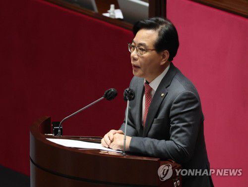 (서울=연합뉴스) 홍정규 안채원 기자 = 국민의힘 송언석 의원은 23일 더불어민주당 이재명 대표가 주장하는 '35조원 추가경정예산(추경) 편성'을 두고 "제발 정신 좀 차리라"고 비판했다.