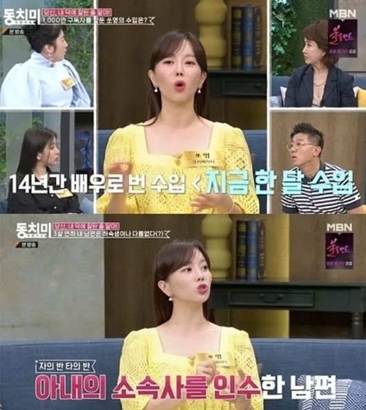 현재 남편이 자신이 속한 회사의 대표라는 쏘영은 "미국에서 세무 회계 전공한 남자가 해보고 싶었다면서 제가 있던 회사를 인수해 제 대표님이 됐다"라며 "제가 일을 안 하면 회사가 망한다. 생활비도 제가 낸다"라고 말했다.