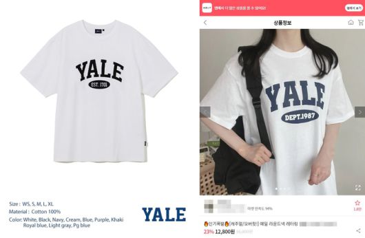 실제 에이블리와 브랜디 등에서 국내 디자이너 브랜드 ‘예일(YALE)’을 검색하면 공식 판매처가 아닌 판매업체들과 상품을 발견할 수 있다. 정면에 예일 로고를 넣은 티셔츠가 대다수인데, 이들은 모두 지식재산권을 무단으로 도용한 카피 상품이다. 예일 브랜드 정품은 예일대학교를 통해 정식 라이선스 사용 허가를 받은 워즈코퍼레이션에서 발매하는 것만 해당된다. 나머지는 모두 별도의 허가나 계약 없이 무단으로 지식재산권을 도용한 상품이다. 예일 정품은 ‘YALE’ 로고 하단에 예일대학교의 공식 설립연도인 1701년이 표기돼있지만, 짝퉁 상품에는 이와 관련 없는 ‘1987’이란 숫자가 쓰인 경우도 있었다.