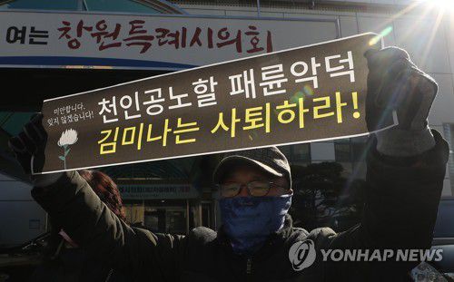 (창원=연합뉴스) 김선경 기자 = 이태원 참사 관련 막말로 의원직 사퇴 요구에 직면했던 김미나 경남 창원시의원이 이번에는 민주 추모 공간에 대한 발언으로 비판받고 있다.