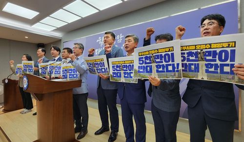 민주당 의원들은 충남도청에서 기자회견을 하고 "국민의힘 의원들은 지역 수산업과 해양생태계 보호를 위한 원전 오염수 방류 반대에 동참하라"고 촉구했다.