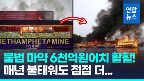 미얀마 군정은 작년 마약퇴치의 날에도 6억4천200만 달러(약 8천385억원) 규모의 마약을 소각했습니다.
