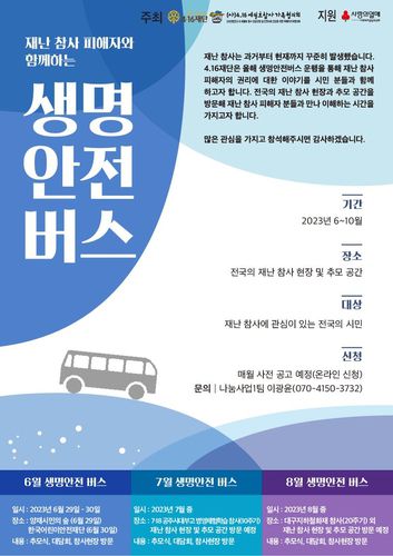 생명안전버스는 오는 30일 24주기를 맞는 경기 화성 씨랜드화재참사(유치원생 19명과 인솔교사 등 23명 사망), 7월 18일 10주기를 맞는 충남 태안 사설 해병대캠프참사(공주사대부고 학생 5명 사망) 관련 행사가 예정돼 있다.