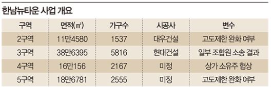 이처럼 가처분 신청이 인용되면서 한남3구역 재개발 사업은 사실상 멈춰 섰다. 가처분이 인용되면 본안 소송 결과 전까지 사업을 진행할 수 없기 때문이다.