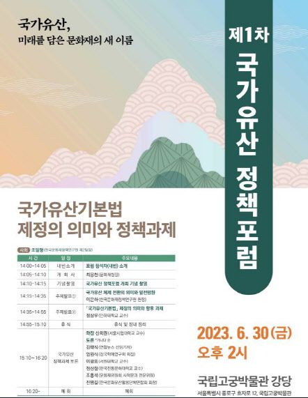 [이데일리 이윤정 기자] 국가유산 미래전략과 비전 수립을 위한 ‘국가유산 정책토론회’가 6월 30일 서울 종로구 국립고궁박물관에서 열린다.