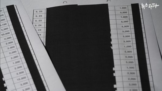 각 영수증에는 ‘수령인’과 ‘지급 사유’와 ‘목적’ 등이 쓰여져 있었던 것으로 추정되는데, 역시 모두 가려졌다. ‘제목’과 ‘지급 금액’, ‘지급 연월일자’만 파악할 수 있다.