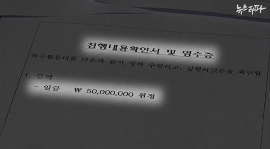 ‘4,000만 원’. 검사가 웬만한 직장인의 1년 연봉과 맞먹는 돈을 ‘현금’으로 지급받았다. 돈을 어디에, 어떻게 썼는지 입증할 증빙자료는 ‘영수증’이라고 적혀 있는 종이 한 장이 전부다. 한 장짜리 영수증을 제출받은 검찰은 검사에게 특수활동비로 현금 4천만 원을 내줬다.