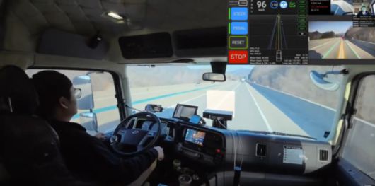 자율주행 대형트럭이 세종시 이마트24 물류센터에서 출발해 경부고속도로에 진입한다. 부산까지 물건을 나르는 동안 운전자는 핸들과 페달에서 자유롭다. 인공지능(AI) 카메라가 도로와 운전자 상태를 인식·판단해 차량을 제어한다. 위험상황 발생시 관제 시스템을 통해 음성으로 경고 메시지를 전한다.