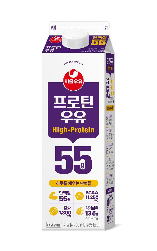 신제품 ‘프로틴 우유’는 단백질 특유의 텁텁한 맛은 최소화하고 우유 본연의 고소한 풍미를 유지하면서도 900mL 한 팩에 단백질 1일 영양성분 기준치 55g을 담은 고단백 우유다.