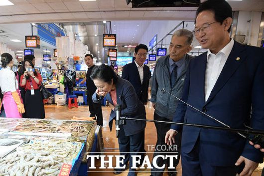 국민의힘 기재위 위원들이 30일 오전 최근 후쿠시마 원전 오염수의 해양 방류 문제로 어려움을 겪는 서울 동작구 노량진수산시장을 방문해 오찬을 갖고 있다. 더팩트 제공 |
