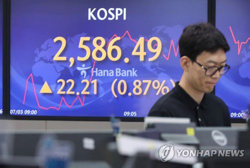 이날 오전 9시 18분 현재 코스피는 전 거래일보다 23.42포인트(0.91%) 오른 2,587.70이다.