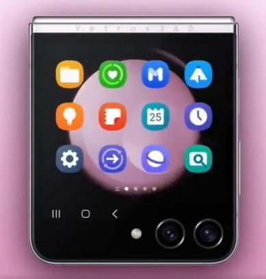 팁스터 Vetrox360가 예상한 갤럭시Z 플립5 외부 디스플레이 모습. [사진출처=트위터 캡처] |